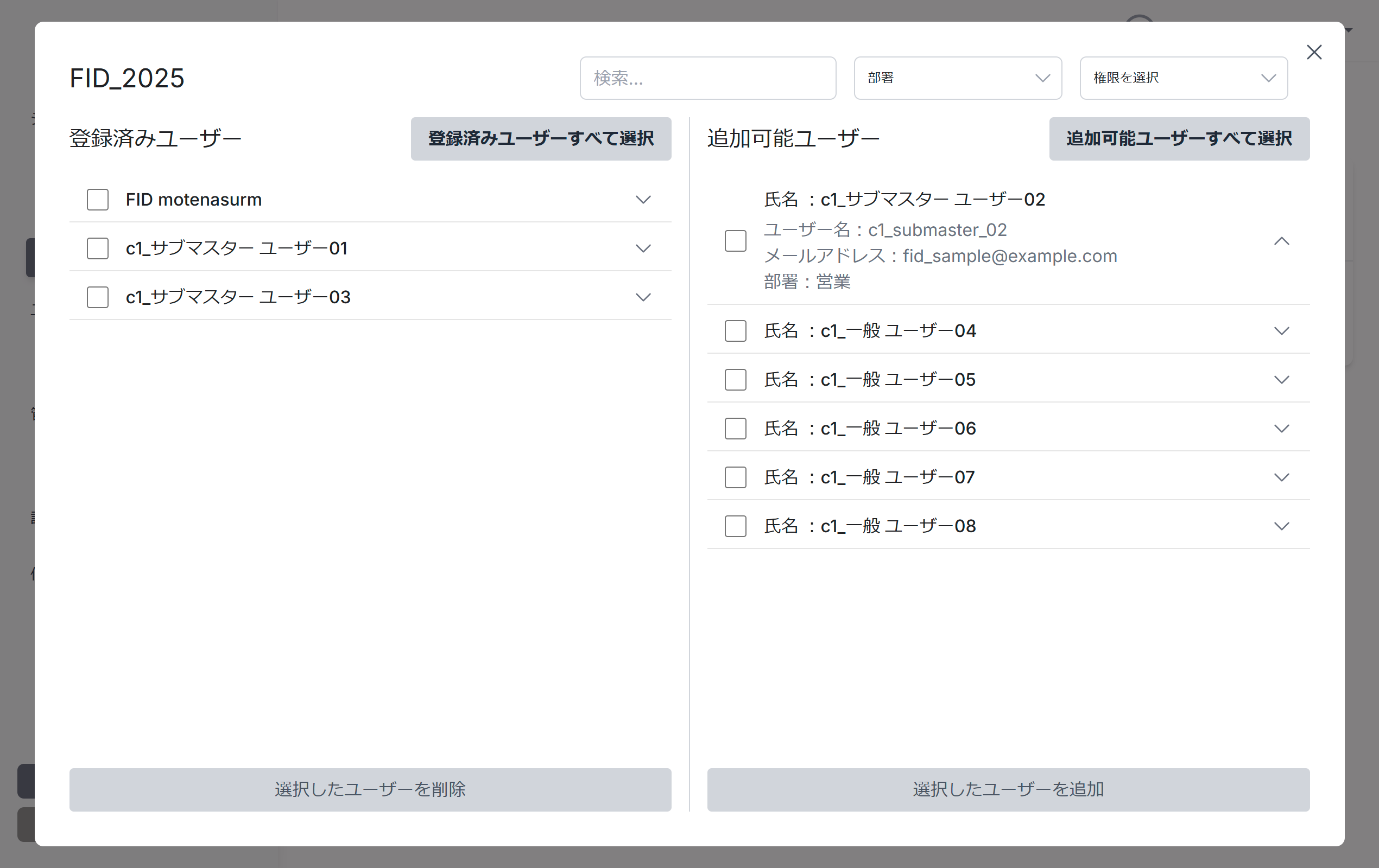 選択したユーザーを追加ボタンをクリックすると、選択したユーザーが左側に移動します。