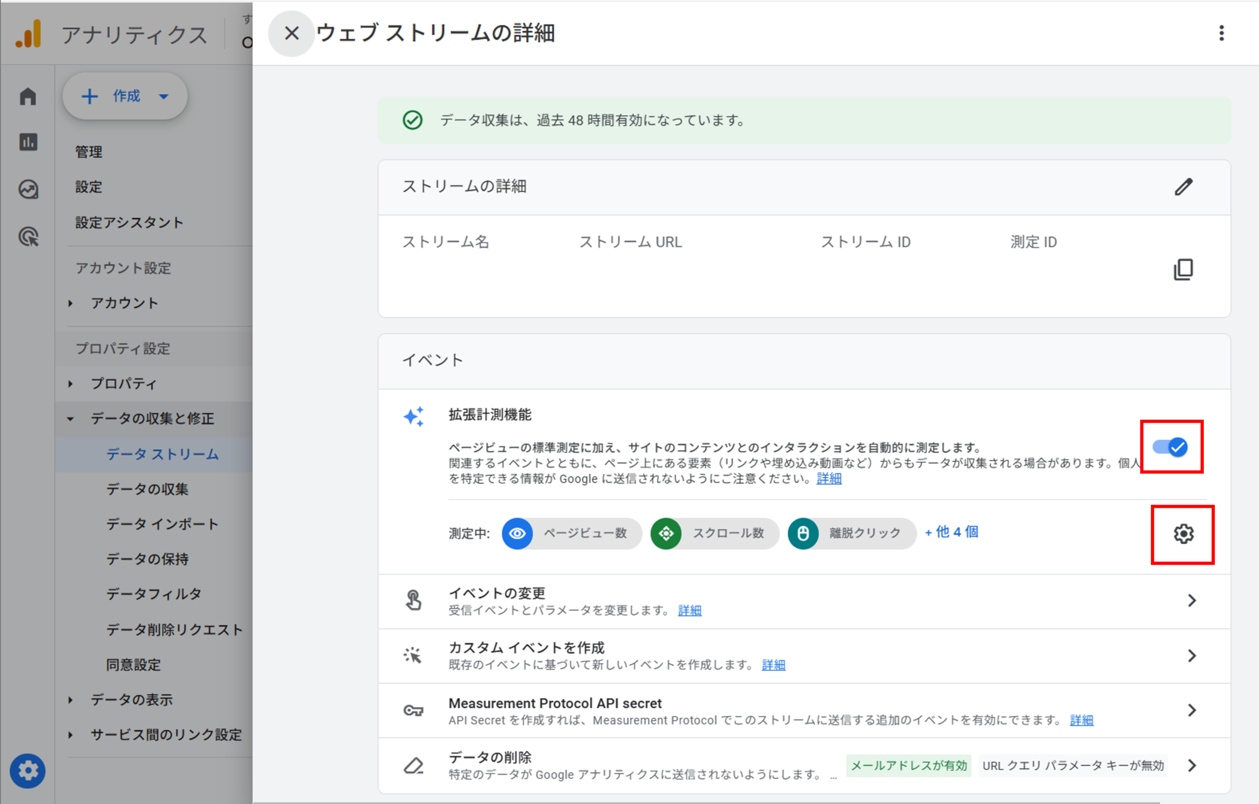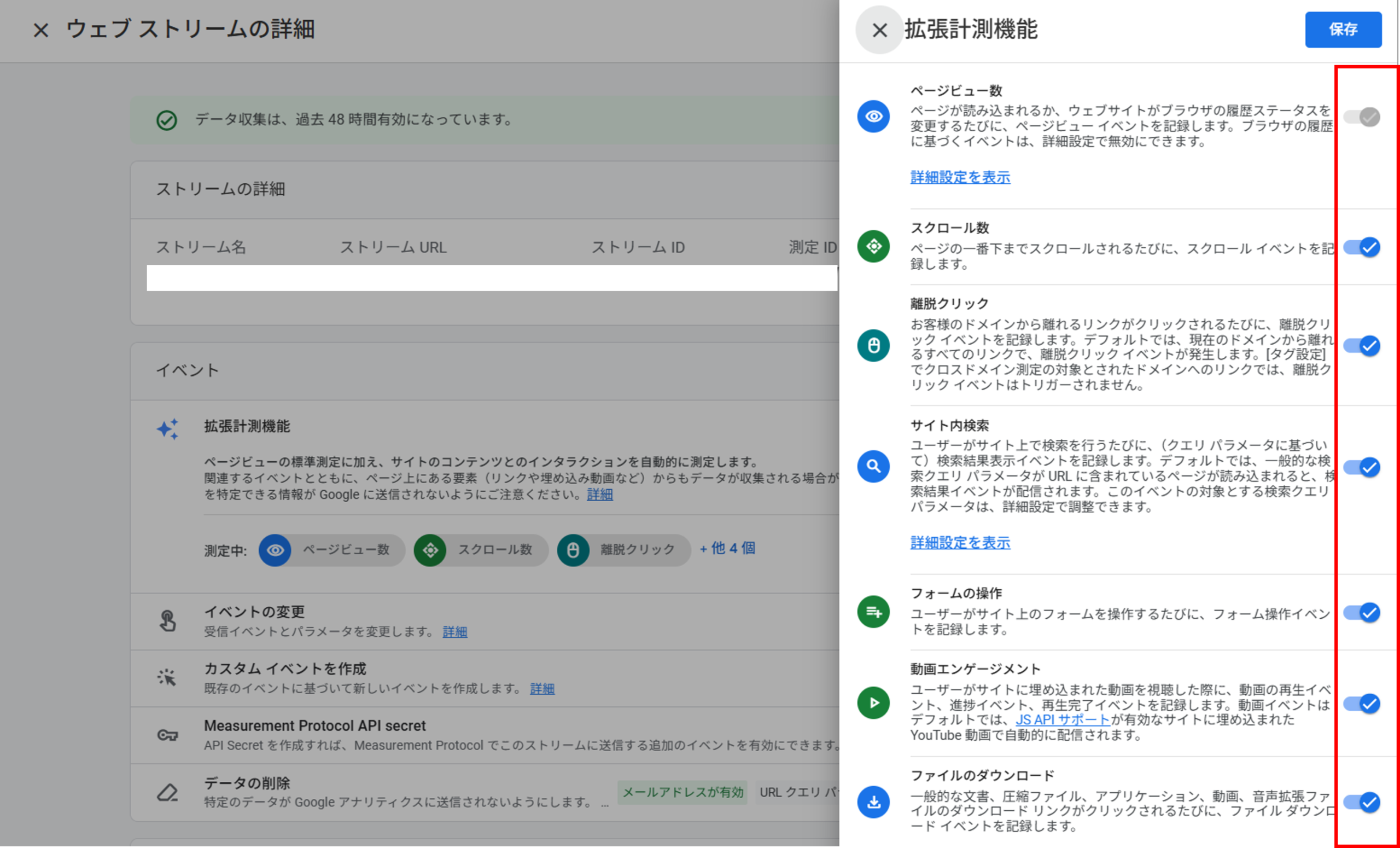 ⭐ 有効を強く推奨:スクロール数、離脱クリック、サイト内検索、フォームの操作